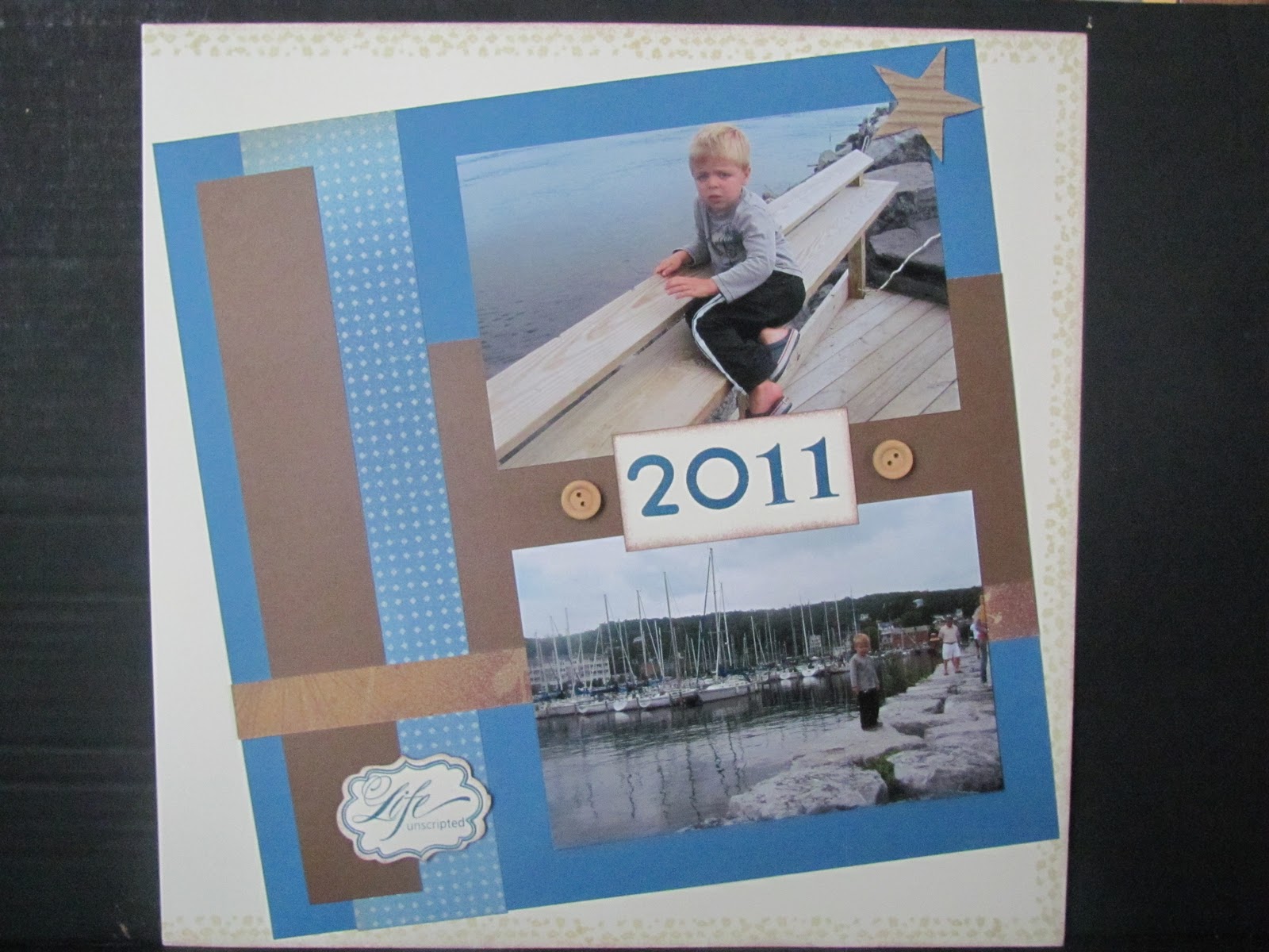 Happy New Year everyone! I hope you'll be joining us for Monday Night's class to create the layout pictured above. The template is from Magic, it's called "On with the Show." The paper pack is called Dreamin'. I used "Unscripted" and the January Stamp of the Month "Little Reminder" as well as the corrugated stars and wooden buttons. It is very easy to place 4 x 6 pictures. If you aren't signed up yet and you'd like to join us, please email me at zabel800@hotmail.com.